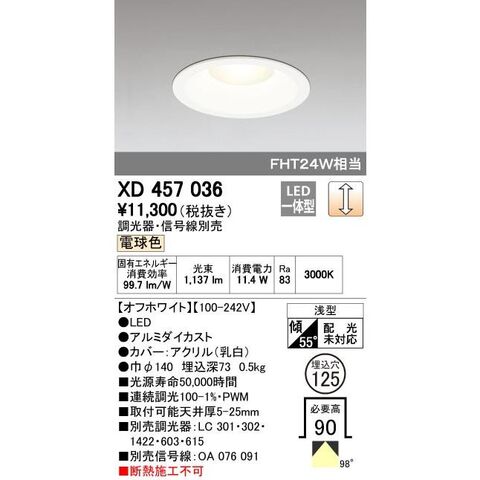 オーデリック ODELIC XD457036 LEDダウンライト 電球色 M形 XD457036LEDベースダウンライト