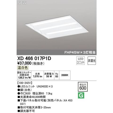 オーデリック ODELIC XD466017P1D LEDベースライト ルーバー無 温白色