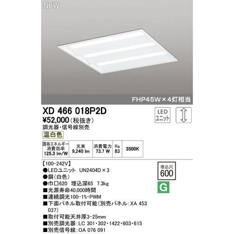 オーデリック ODELIC XD466018P2D LEDベースライト ルーバー無 温白色