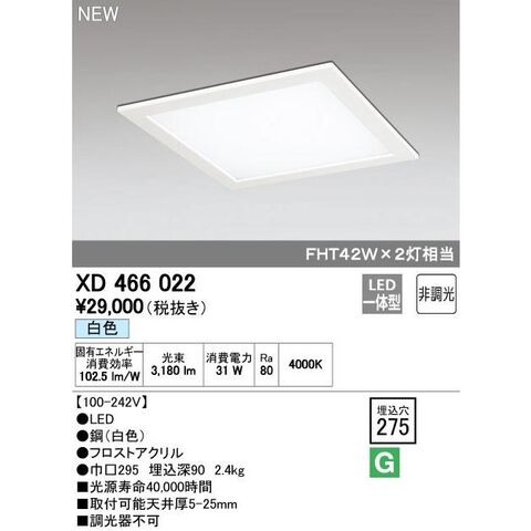 オーデリック ODELIC XD466022 LEDベースライト 下面アクリルカバー付 白色