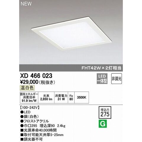 オーデリック ODELIC XD466023 LEDベースライト 下面アクリルカバー付 温白色