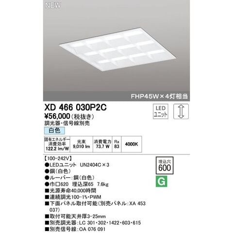 オーデリック ODELIC XD466030P2C LEDベースライト ルーバー付 白色 LEDユニット型ベースライト省電力タイプ
