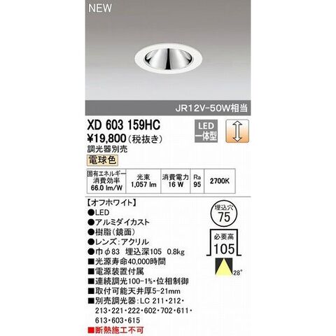 オーデリック ODELIC XD603159HC LEDダウンライト