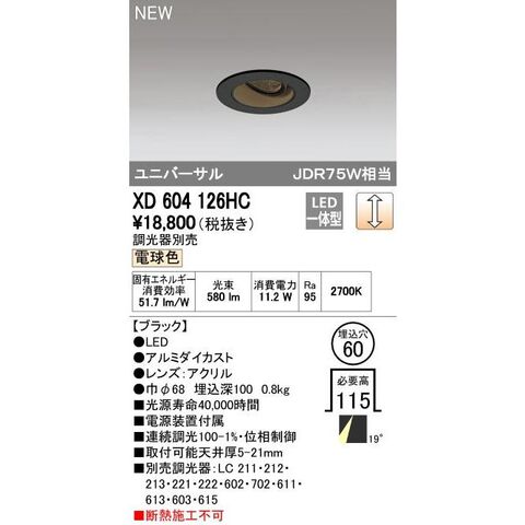 オーデリック ODELIC XD604126HC LEDダウンライト