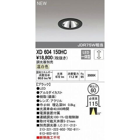 オーデリック ODELIC XD604150HC LEDダウンライト