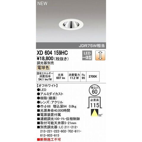 オーデリック ODELIC XD604159HC LEDダウンライト