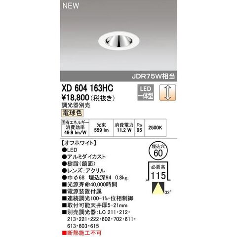オーデリック ODELIC XD604163HC LEDダウンライト