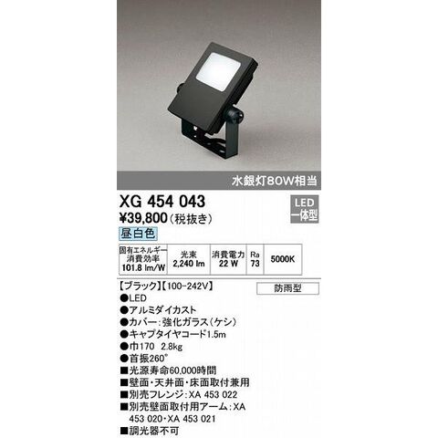 オーデリック ODELIC XG454043 LED投光器 スポットライト 防雨型 エクステリアライト 昼白色
