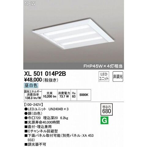オーデリック ODELIC XL501014P2B LEDベースライト 埋込兼用型 ルーバー無 昼白色