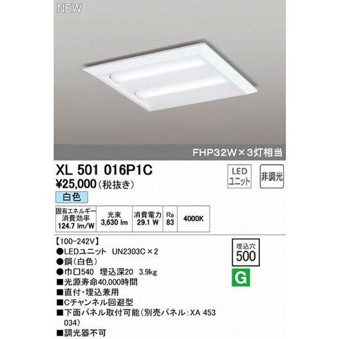 オーデリック ODELIC XL501016P1C LEDベースライト 埋込兼用型 ルーバー無 白色