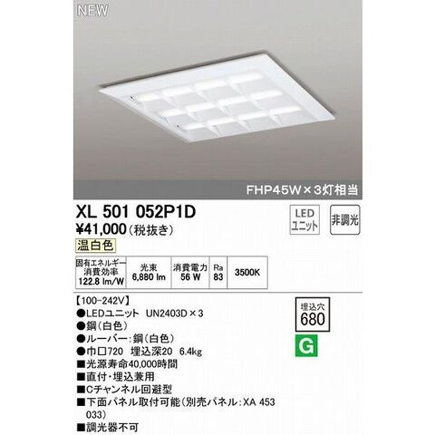 オーデリック ODELIC XL501052P1D LEDベースライト 埋込兼用型 ルーバー付 温白色