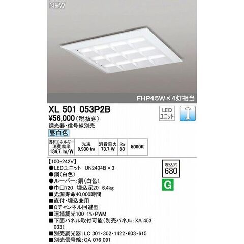 オーデリック ODELIC XL501053P2B LEDベースライト 埋込兼用型 ルーバー付 昼白色
