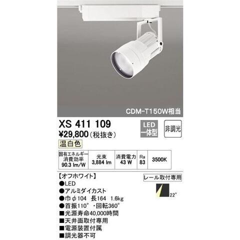 オーデリック ODELIC XS411109 LEDスポットライト LEDダクトレール用スポットライトXS411109