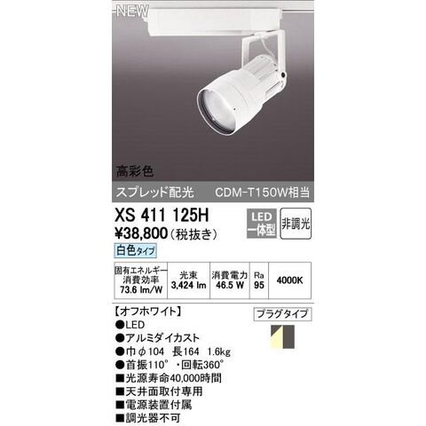 オーデリック ODELIC XS411125H LEDスポットライト LEDダクトレール用スポットライトXS411125H