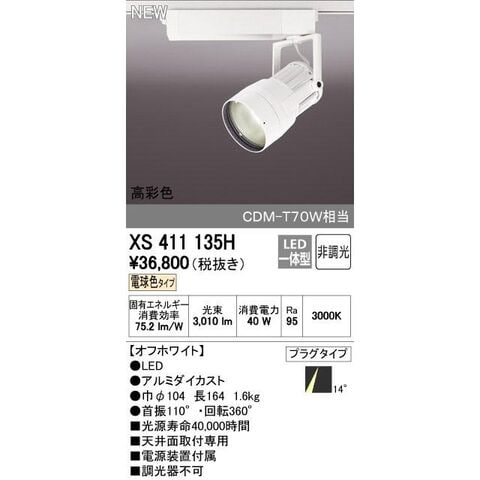 オーデリック ODELIC XS411135H LEDスポットライト LEDダクトレール用スポットライトXS411135H