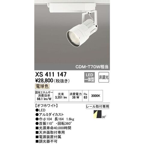 オーデリック ODELIC XS411147 LEDスポットライト LEDダクトレール用スポットライトXS411147