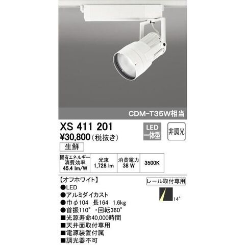 オーデリック ODELIC XS411201 LEDスポットライト 生鮮用 LEDダクトレール用スポットライトXS411201