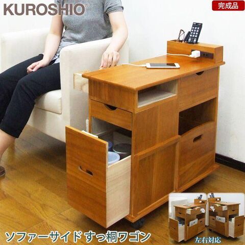 クロシオ 4954877648383 直送 代引不可 ソファーサイド すっ桐ワゴン 完成品