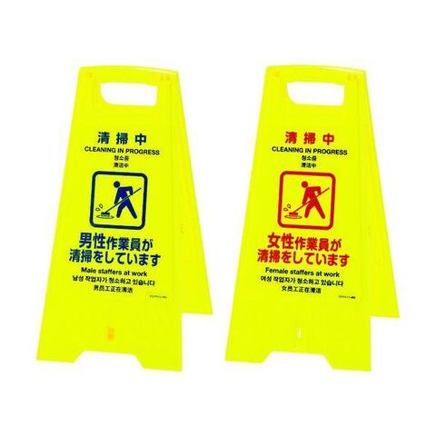 ●表示内容:清掃中・男性作業員が清掃をしています ⇔ 女性作業員が清掃をしています