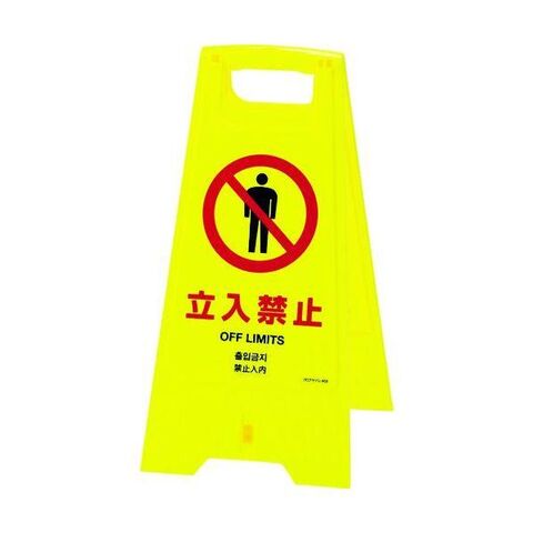 緑十字 337403 フロアサインスタンド 立入禁止 4ヶ国語 フロアサイン-403 625×310mm 両面表示 337403