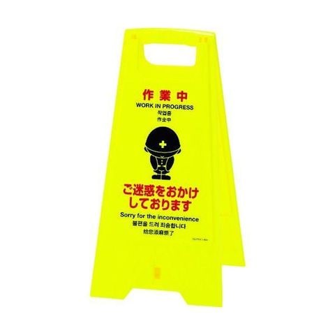 緑十字 337404 フロアサインスタンド 作業中・ご迷惑を フロアサイン-404 625×310mm 両面表示 337404