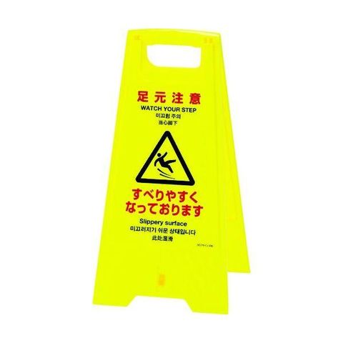 緑十字 337405 フロアサインスタンド 足元注意・すべりやすく フロアサイン-405 625×310 両面表示 337405
