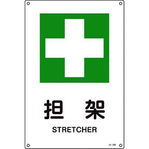 緑十字 391306 JIS規格安全標識 担架 JA-306L 450×300mm エンビ 391306