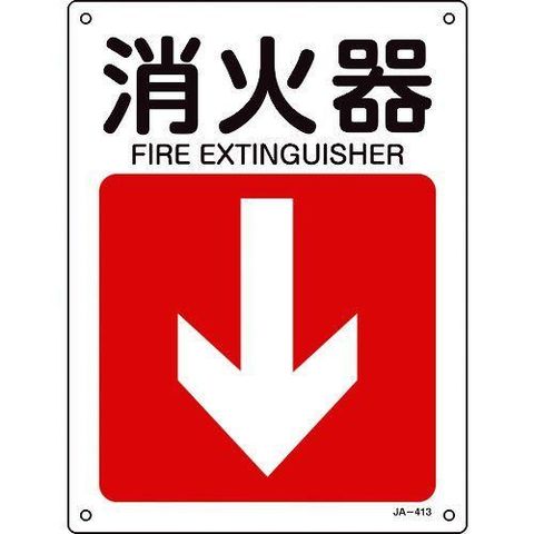 緑十字 392413 矢印付案内標識 消火器↓ 下矢印 JA-413 300×225mm エンビ 392413