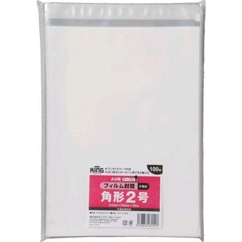 キングコーポ FFWK2Q100 フィルム封筒 角2 片面白 テープ付 100枚FFWK2Q100