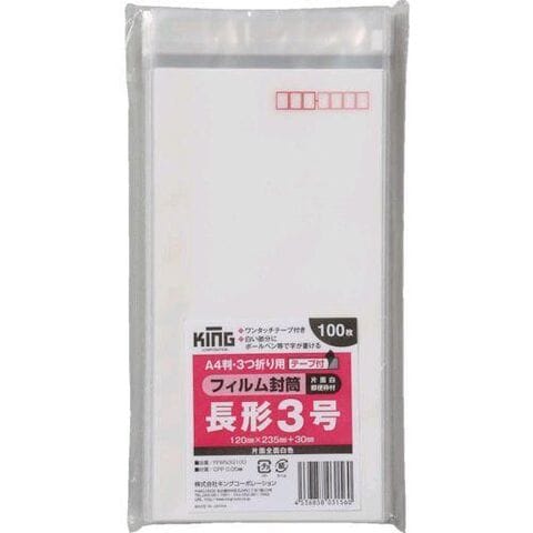 キングコーポ FFWN3Q100 フィルム封筒 長3 片面白 枠付 テープ付 100枚FFWN3Q100