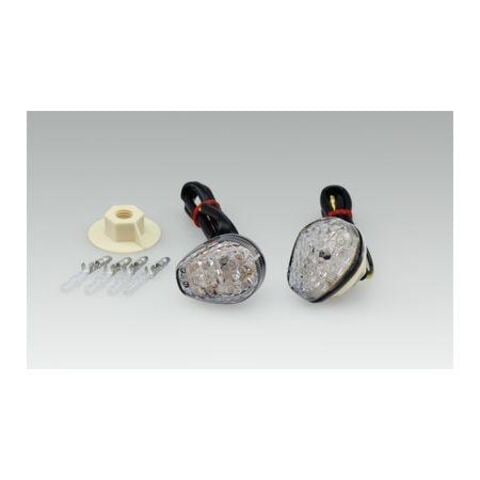 クリアとスモークのレンズ色を用意しました。M10の穴あけで汎用のカウルウインカーとしても使用出来ます。