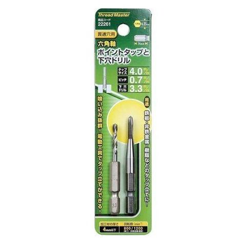 イチネンミツトモ 六角軸ポイントタップ M4×0.7mm 3.3mm下穴ドリル付 22261