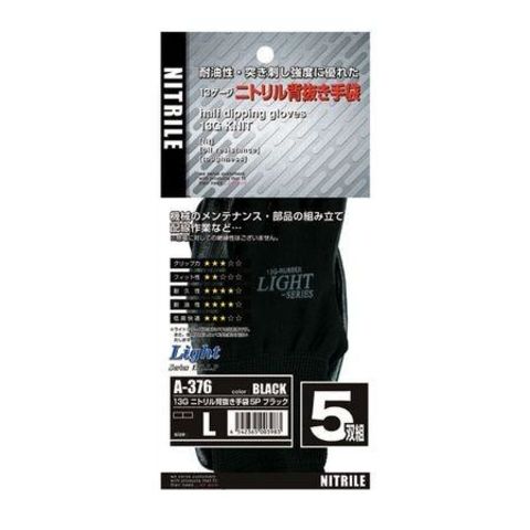 直送 代引不可・他メーカー同梱不可 おたふく手袋 4542365003983 ブラック L ニトリル背抜き 5P A-376【キャン