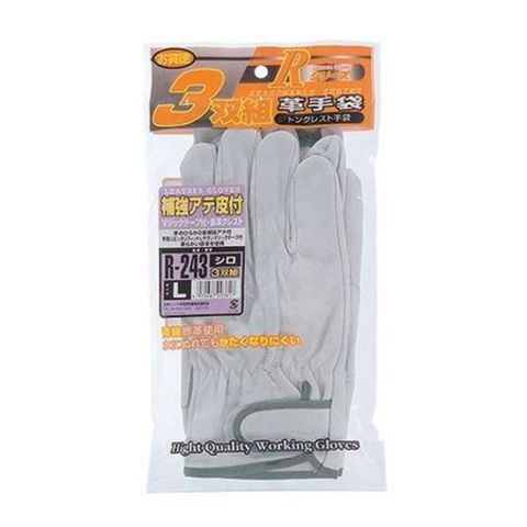 直送 代引不可・他メーカー同梱不可 おたふく手袋 4970687003617 白3P L 豚革アテ付マジック R-243 補強アテ皮付 211529R