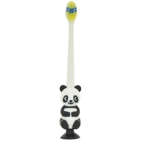 足の吸盤がぴたっとくっつく衛生的でかわいいパンダの歯ブラシです。