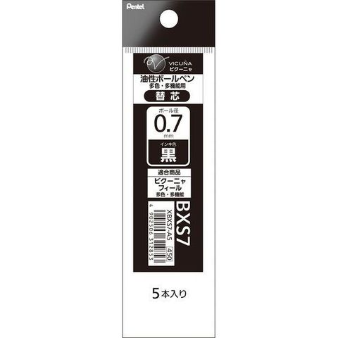 ぺんてる XBXS7-A5 ビクーニャBP替芯07 BXS7 黒5本 XBXS7A5