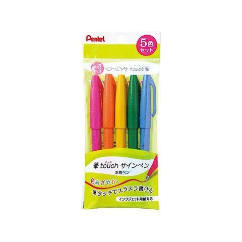 ぺんてる XSES15C-5 パック筆タッチサインペン 5色セット XSES15C5