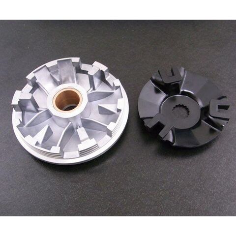 プーリーローラーガイドをノーマルよりも外側へ引き伸ばし、またプーリー角度を1度あげる事で最高速を大幅に向上させます。角度変更を1度に抑えている為、純正調のドライブVベルトに対応しており、加速への影響は限定的です。またプーリーを肉薄化し加速アップにも貢献しています。加速/トップスピードを大幅に向上させるオススメのハイスピードプーリーです。
