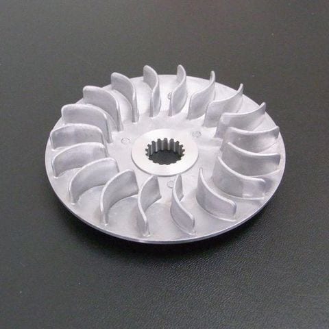 ハイスピードプーリーフェイスになります。フィンを軽量化させ空気抵抗を抑え、伝達動力のロス率を低減させます。動力を向上させるハイスピードタイプのプーリー(別売)を同時に交換するとよりハイレベルな走行を可能にさせます。