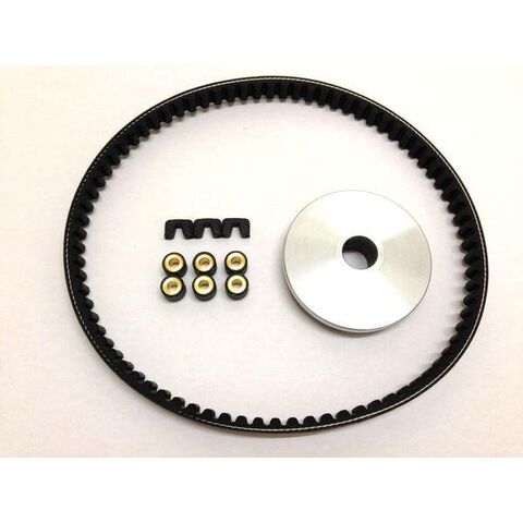 キット内容:プーリー(φ21)/スライドピース/ウエイトローラー(15x12 6g)/ドライブVベルトをセットにした駆動系オールインワンセットです。なんだか最近スピードがでないなぁ・・と思うそこのあなた!駆動系まわりってノンメンテナンスで駆動系主要部品の交換が必要ってパターンが多いんです。「修理代金はいくらかかるのか」と不安になったら当キットの出番。車種専用キットだから部品の組み合わせの心配ご無用なのです!