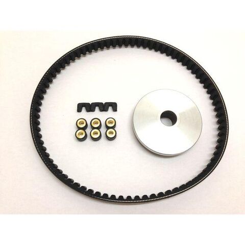 キット内容:プーリー(φ21)/スライドピース/ウエイトローラー(15x12 6g)/ドライブVベルトをセットにした駆動系オールインワンセットです。なんだか最近スピードがでないなぁ・・と思うそこのあなた!駆動系まわりってノンメンテナンスで駆動系主要部品の交換が必要ってパターンが多いんです。「修理代金はいくらかかるのか」と不安になったら当キットの出番。車種専用キットだから部品の組み合わせの心配ご無用なのです!