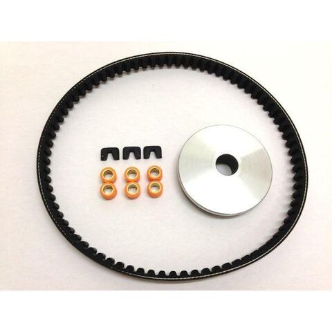 キット内容:プーリー(φ21)/スライドピース/ウエイトローラー(15x12 7g)/ドライブVベルトをセットにした駆動系オールインワンセットです。なんだか最近スピードがでないなぁ・・と思うそこのあなた!駆動系まわりってノンメンテナンスで駆動系主要部品の交換が必要ってパターンが多いんです。「修理代金はいくらかかるのか」と不安になったら当キットの出番。車種専用キットだから部品の組み合わせの心配ご無用なのです!