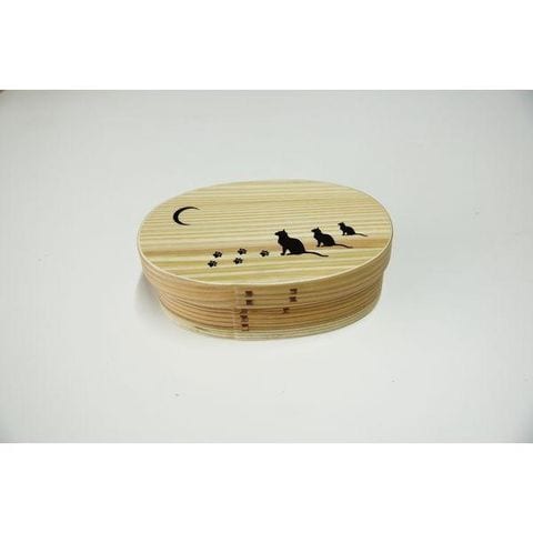 【個数:1個】中茂国際 BDH1711B 木製 一段 小判型 中 杉 猫&月 ナチュラル バンド付き 杉 曲げわっぱ お弁当箱