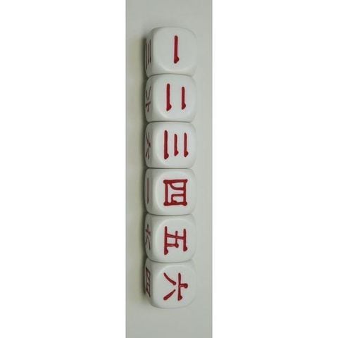 漢数字一~六が割り振られた6面の漢字ダイス。赤文字。