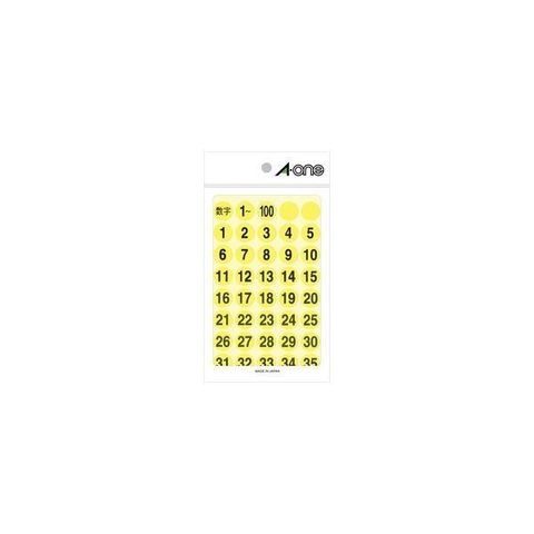 A-one エーワン 08079 特殊ラベル 蛍光黄 数字 丸型 3シート 15mm スリーエム 黒文字 15mm丸 径15mm