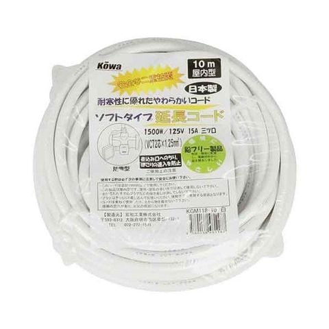 4580138481187 KOWA 延長コード 15A×10m KGM118-10 シロ 宏和工業 1コ入コード