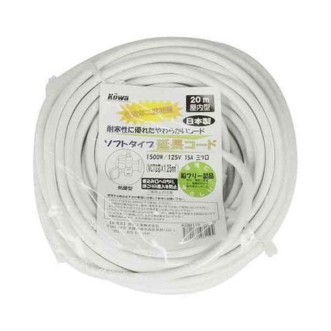 4580138481194 KOWA 延長コード 15A×20m KGM119-20 シロ 宏和工業 1コ入コード