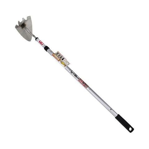 ピンでパイプを固定するタイプの伸縮柄です。従来の三角ホーと異なり、作業中に不意にパイプが緩む事がなくなります。