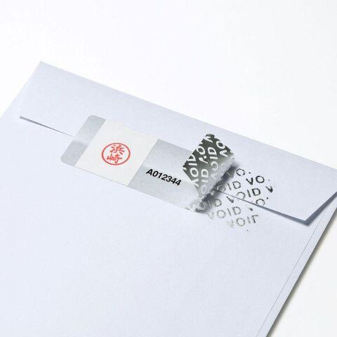 ●シールを貼ってはがすと、はがした部分に「VOID」の文字が残ります。開封したことが一目でわかります。