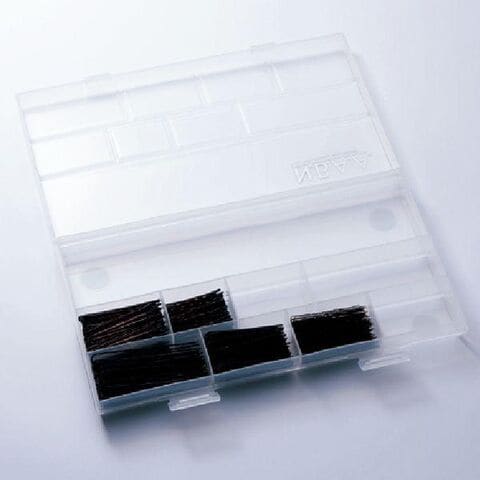 スタイリストの技術的見地から設計されたプロ仕様のピンケースは、サロンワークやステージワーク、セミナー、撮影、出張ヘアメイク等、とても扱いやすくコンパクトなので持ち運びにも便利です。また、スピードと正確性が求められるプロの仕事をサポートするために、サイズの異なった各ピン類が、適度な量で最適な位置に配置されるように様々な工夫を凝らしました。決められたサイズに仕切られた収納部分は、一切の無駄を省いたコンパクト設計のためシンプル&ベーシックに仕上がりました。
